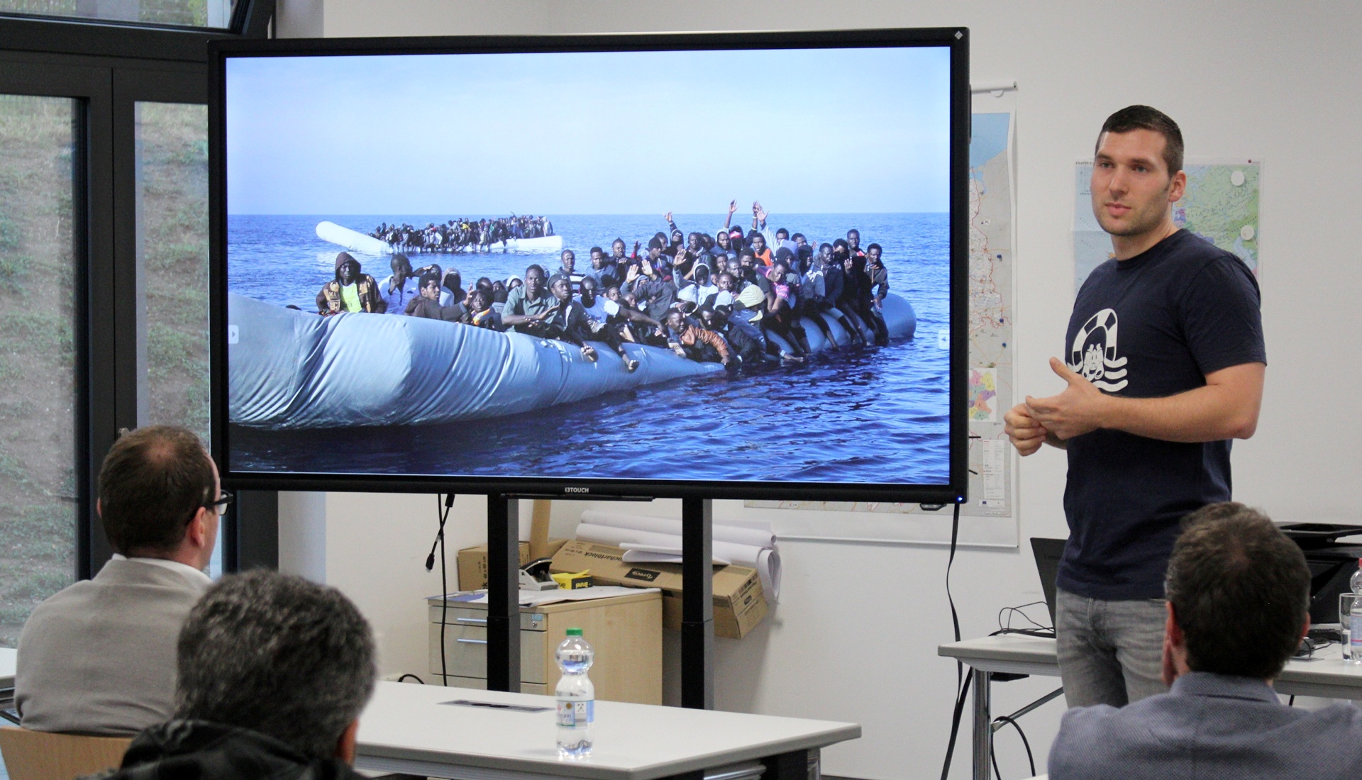 Einfach ist das Ehrenamt in der Hilfsorganisation nicht, das wird mit jedem Wort deutlich. Viele der Zuhörer wirken getroffen von Kleins Worten. Wenn er berichtet, dass die älteren Seawatch-Boote ein bis zwei Tage brauchen, bis sie vom Ausgangsort, momentan Griechenland, in die Einsatzzone im Mittelmeer gelangt sind – und damit zu spät kommen zur Rettung. „Das ist, wie mit einem Hollandrad die gesamte afrikanische Küste abzufahren“, zieht er einen Vergleich. Oder wenn er erzählt, wie Flüchtlinge, sobald sie die Seawatch-Boote sehen, ins Wasser springen, um gerettet zu werden – und sich damit in Lebensgefahr begeben.