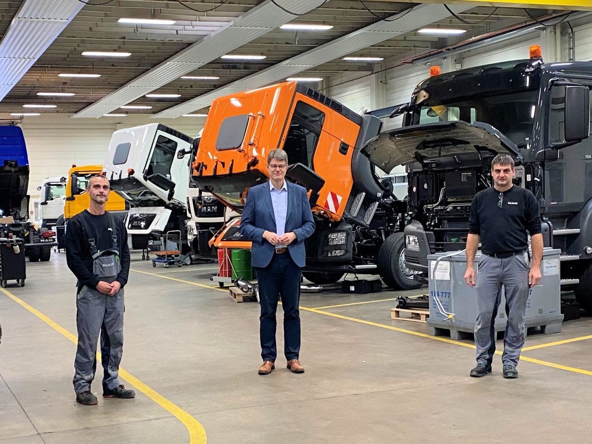 Wittlich, 16.10.2020 – Der Wittlicher MAN-Standort kämpft nach einer Ankündigung des Mutterkonzerns um sein Überleben. Die Belegschaft hat nun den Eifeler Bundestagsabgeordneten Patrick Schnieder nach Wittlich eingeladen, um über die aktuelle Situation zu sprechen. „Das Wittlicher Werk ist profitabel, die Auftragsbücher sind voll und die Mitarbeiter leisten hervorragende Arbeit“, sagte Schnieder nach dem Rundgang durch die Werkshalle. „Warum ausgerechnet der Standort Witt lich schließen soll, wenn man weltweit 9.500 Stellen abbauen will, kann ich nicht nachvollziehen.