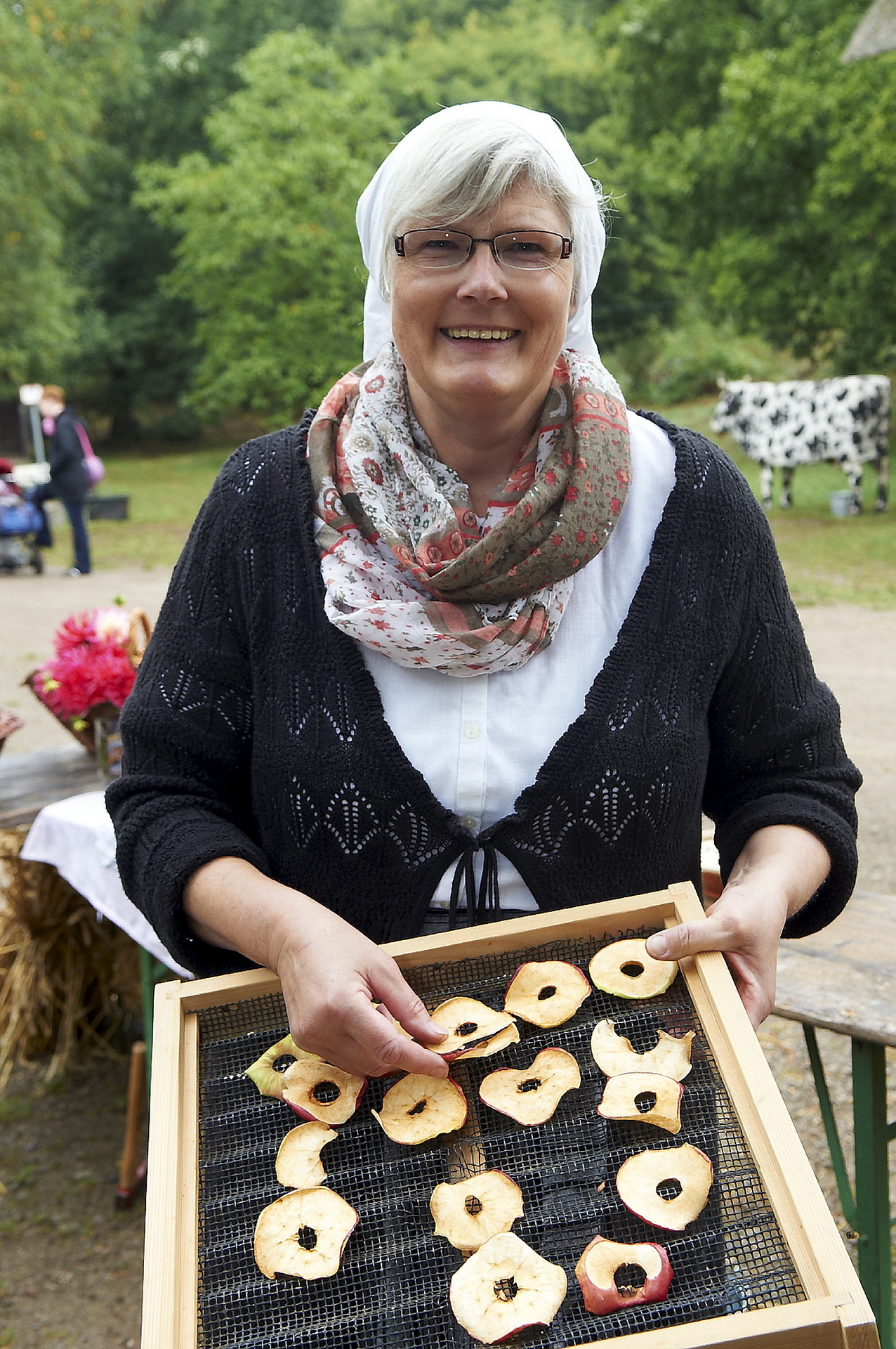 Museumbäuerin Rosi Josten zeigt Apfelscheibentrocknen beim „Tag nach der Ernte“ im Freilichtmuseum Kommern. Archivfoto: pp/Agentur ProfiPress
