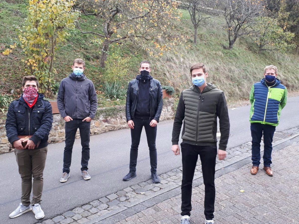 Mechernich-Kallmuth, 09.11.2020 – Trotz Corona wurde in Kallmuth „gebrabbelt“. Und zwar mit Mundschutz und Sicherheitsabstand. Marco Sistig, Simon Seidenfaden, Martin Stoffels, Kai Steffens und Raphael Drove haben das uralte mystisch anmutende Brauchtum damit auch in Krisenzeiten hochgehalten.