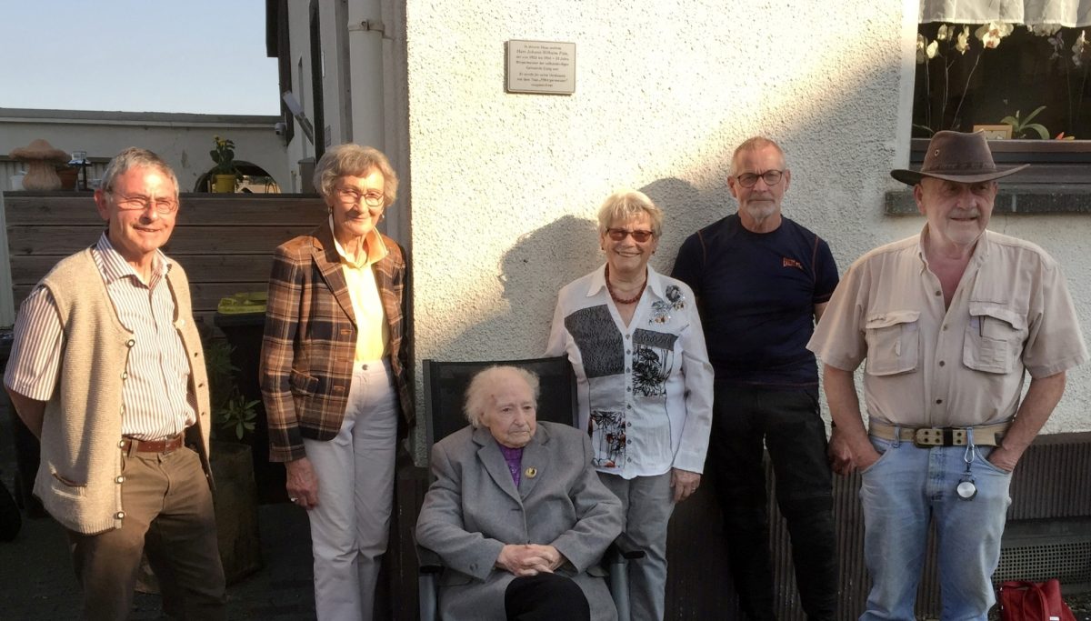 Kall-Sistig, 23.11.2020 – Die Enkelkinder des Sistiger Altbürgermeisters Johann-Wilhelm Pütz haben in dessen Gedenken eine Gedenktafel am früheren Wohnhaus im Dorf angebracht. Pütz wurde im November 1875, also vor 145 Jahren, geboren.