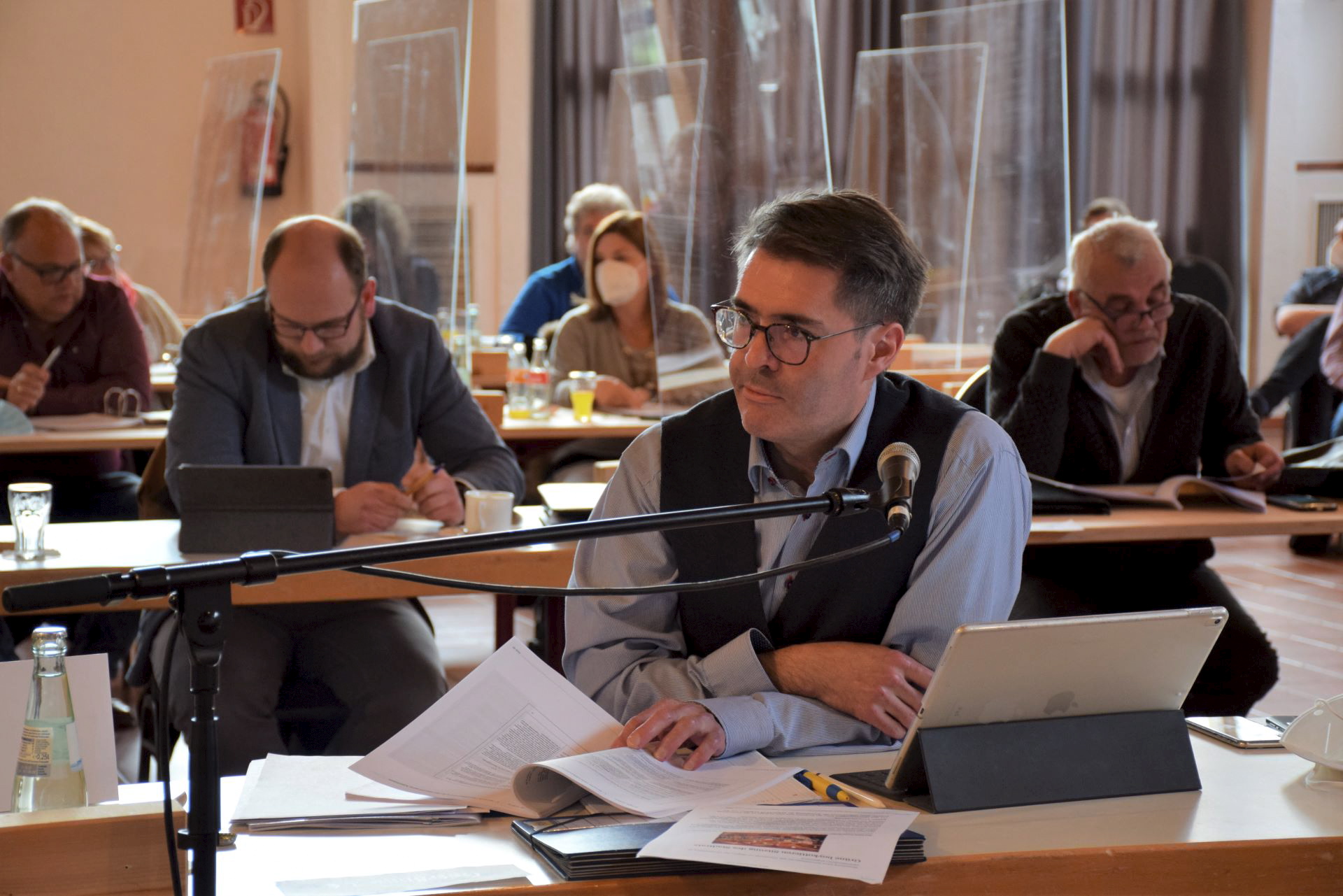Und das am liebsten gesund, wie der UWV-Vorsitzende Gunnar Simon darlegte. Er mahnte zur Vorsicht: „Ein strukturelles Defizit von 1,5 Millionen Euro klingt nicht gerade gesund; wir werden also höchstwahrscheinlich mehr ausgeben als wir einnehmen – auch wenn die Kämmerei für ihre vorsichtigen Prognosen bekannt ist.“ Trotzdem sei es gerade jetzt umso wichtiger, Geld in die Hand zu nehmen und zu investieren. „Wir können, dürfen und sollten es uns also auch leisten, Gelder aus den Rücklagen jetzt zurück in die Stadt fließen zu lassen – seien es höhere Zuwendungen zu den Dorfgemeinschaften oder Entlastungen bei unseren Gastronomen.“ Ähnlich wie die Sozialdemokraten sprach sich Simon dafür aus, die Corona-Kosten „nicht unbedingt in unsere Enkelgeneration zu legen“: „Wir müssen – und das ist die Forderung der UWV-Fraktion diesbezüglich – diese Kosten im Rahmen unserer tragfähigen Möglichkeiten bereits zeitnaher abzuschreiben!“