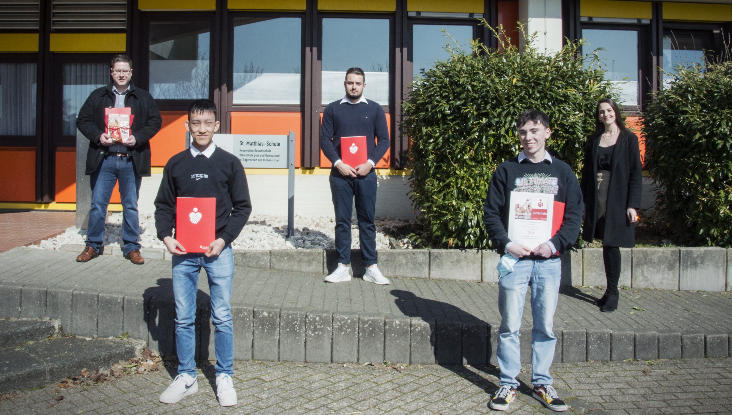 Die Kreissparkasse gratuliert allen Schülerinnen und Schülern sowie den betreuenden LehrerInnen Marcus Niesen (Theobald-Simon-Schule Bitburg), Claudia Clemens und Eva Schooß (beide Realschule Plus Bleialf), Laurenz Schneiders (St. Matthias-Schule Bitburg), Marco Gangolf (St. Josef-Gymnasium Biesdorf) sowie Jens Schneider (Staatl. Eifel-Gymnasium Neuerburg) zu diesen herausragenden Ergebnissen und den gewonnenen Geldpreisen im Gesamtwert von 2.000 €!
