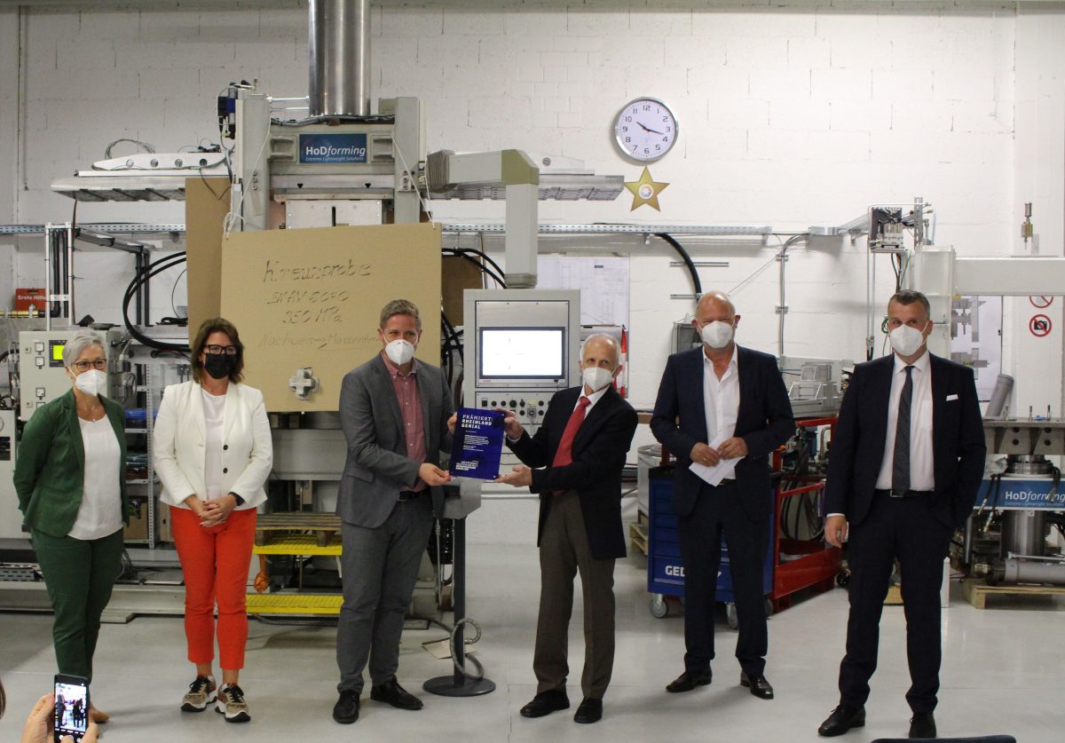 Euskirchen – Die HoDforming GmbH aus Mechernich wurde heute für ihre patentierte „Hot Die Forming“-Technologie mit dem Innovationspreis Rheinland Genial des Metropolregion Rheinland e.V. (MRR) ausgezeichnet. Markus Bau, Bereichsleiter “Wirtschaft, Raum und Strukturwandel” der Region Aachen, und Ulla Thönnissen, Co-Geschäftsführerin der MRR, überreichten den Award gemeinsam mit Markus Ramers, Landrat des Kreises Euskirchen, an die HoDforming GmbH.