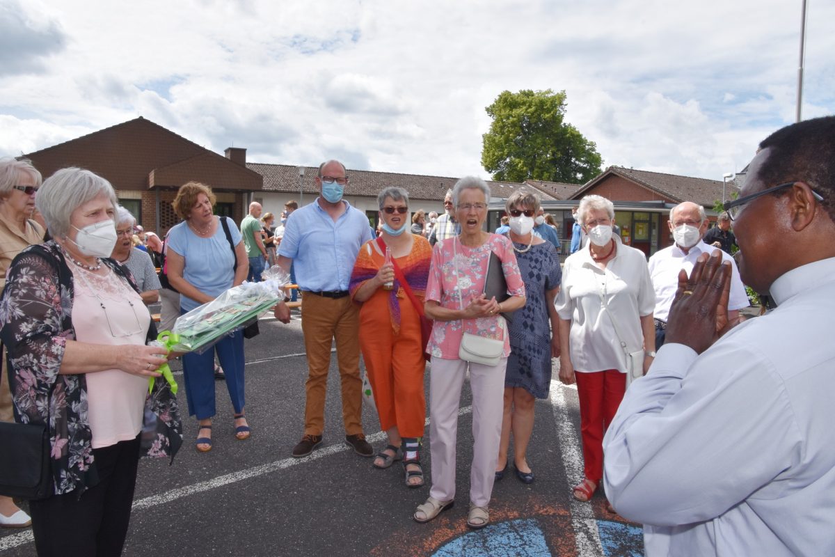 Dr. Dim zu Ehren sang der unter dem neuen Kirchenmusiker Erik Arndt erstmals öffentlich auftretende Kirchenchor St. Cäcilia. Die Kinder des Familienmesskreises um Agnes Peters brachten beste Wünsche in Igbo dar, Innocent Dims Muttersprache.