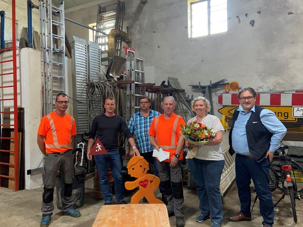 Kruft – In einer kleinen Feierstunde auf dem Bauhof der Ortsgemeinde Kruft gratulierten Ortsbürgermeister Walter Kill, die Beigeordneten Markus Stenz und Jürgen Zinken sowie die Kolleginnen und Kollegen dem stellvertretenden Bauhofleiter Uwe Büchel zu seinem 20-jährigen Dienstjubiläum.