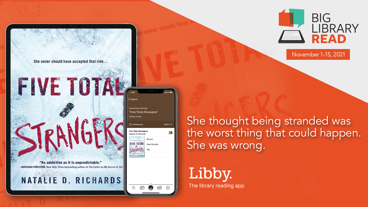 Region/Koblenz – Englischsprachiger New York Times-Bestseller “Five Total Strangers” zur kostenlosen digitalen Ausleihe über “OverDrive Rheinland-Pfalz”. Höllenfahrt ins Ungewisse. Gestrandet im Schneesturm mit vier völlig Fremden, die alle etwas zu verbergen haben: Wie endet der Horrortrip für Romanheldin Mira? Viel Spannung erwartet die Leserinnen und Leser im New York Times-Bestseller von Natalie D. Richards: Der englisch-sprachige Thriller wird im Rahmen des „Big Library Read“, dem weltweit größten Buchclub, jetzt kostenlos über „OverDrive Rheinland-Pfalz“ bei den rund 50 teilnehmenden Bibliotheken unter https://rlp.overdrive.com oder über die App „Libby“ vom 1. bis 15. November digital zur Ausleihe als eBook und Hörbuch angeboten.