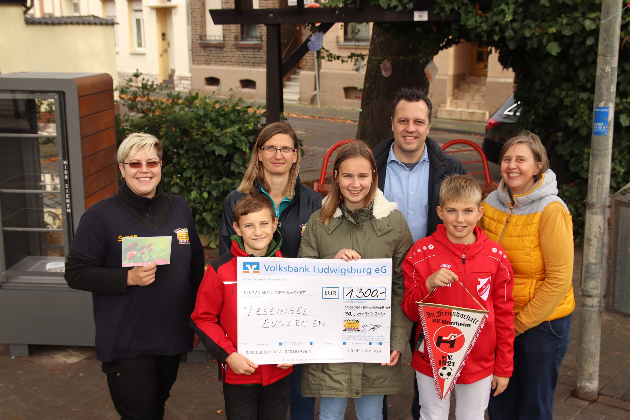 Möglich war die Umgestaltung unter anderem auch durch eine Spende des ehrenamtlichen Kinder- und Jugendfreizeitverein Horrheim e.V. Der Verein hat im Zuge eines Spendenlaufs am 10. September Geld für Kinder- und Jugendprojekte gesammelt und spendet in Regionen, die sehr von der Flut betroffen waren. Zur Verteilung der beim Lauf gespendeten Gesamtsumme hat sich der Verein an drei Gemeinden gewandt, u.a. auch an die Stadt Euskirchen. Auf diesem Wege hat die Stadt für das Projekt „Familienleseinsel“ eine stattliche Summe von 1.300 €, erhalten.
