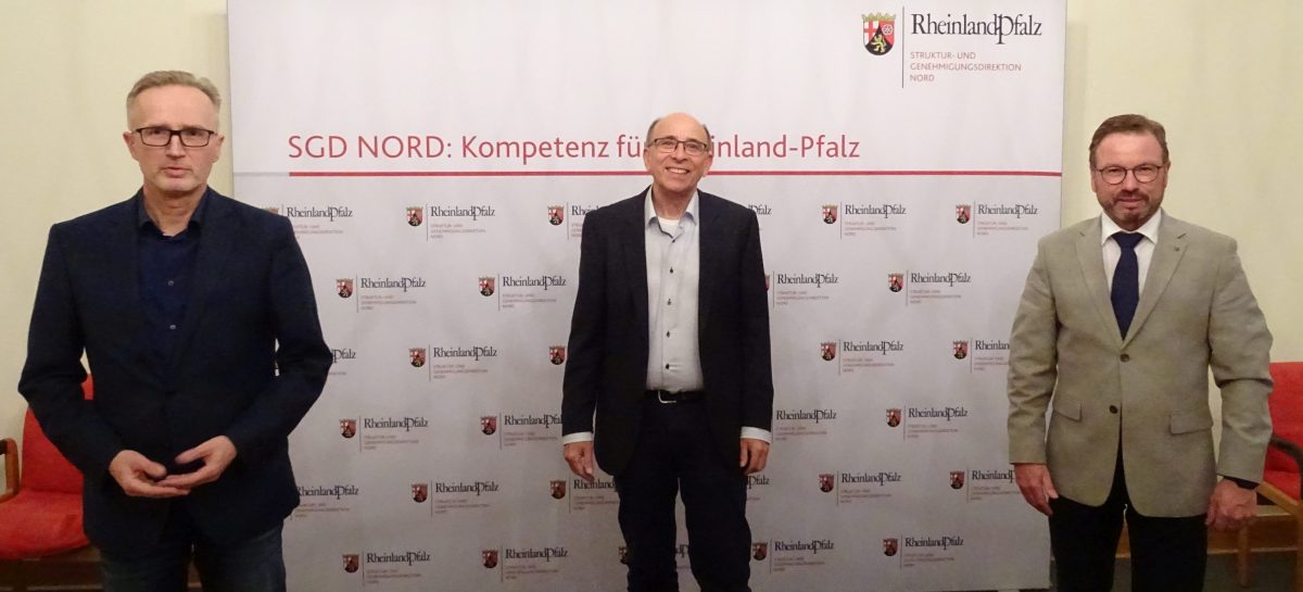 Am gemeinsamen, fachlichen Gedankenaustausch in der SGD Nord nahmen auch Vizepräsident Prof. Dr. Kaschny und Joachim Gerke, Abteilungsleiter für Wasser-, Abfallwirtschaft und Bodenschutz teil. Im Zentrum des Gesprächs standen die verheerende Flutkatastrophe vom 14. und 15. Juli 2021, deren Auswirkungen sowie Ideen und Schritte des Wiederaufbaus.