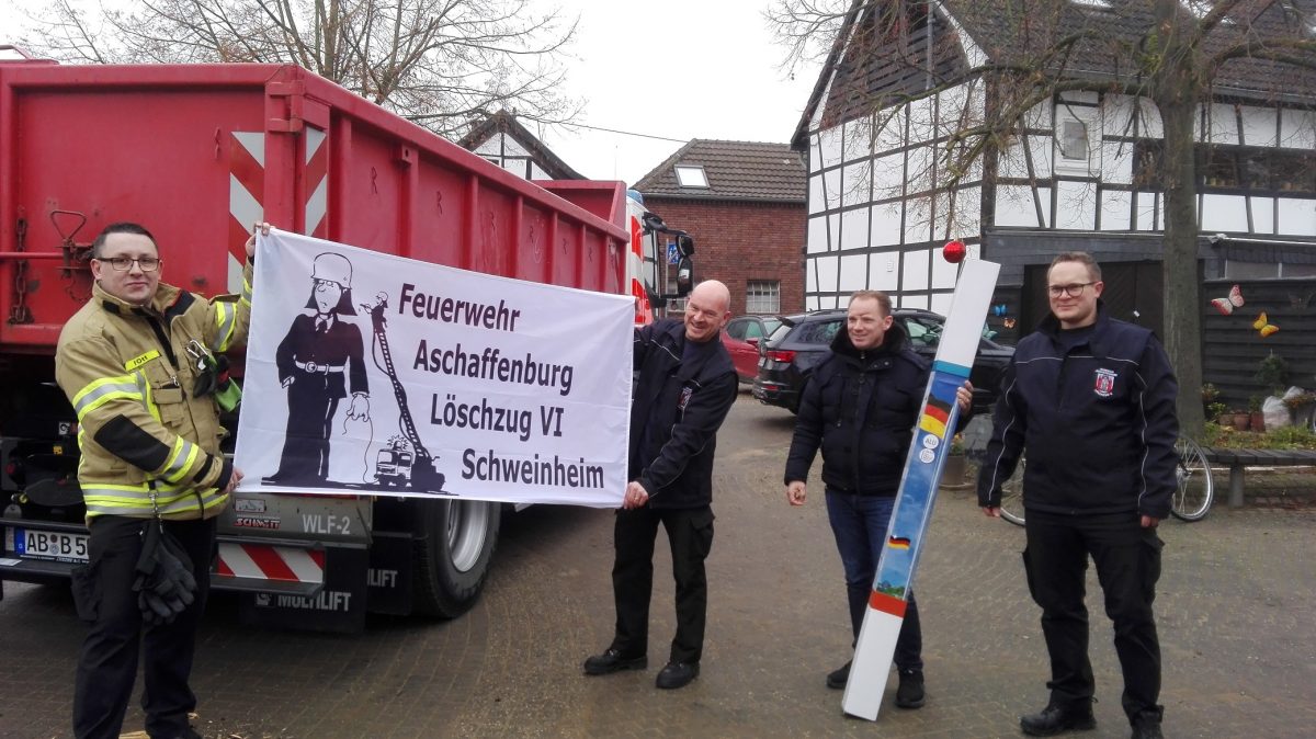Schweinheim/Euskirchen – „Das war der Wahnsinn!“ So kommentiert Eric Leiderer, Bürgermeister von Aschaffenburg, die neuste Aktion des Vereinsrings Schweinheim.  Eine Abordnung aus Bayern reiste am vergangenen Samstag in den Kreis Euskirchen: die vier Feuerwehrleute Dominik Schmitt, Bernd Leonardy, Sina Reinhardt und Fabian Ott vom Löschzug 6 und zwei Vertreter des Vereinsrings, Peter Stoll und Werner Oberle, die das Dorf inzwischen schon gut von früheren Besuchen kennen.