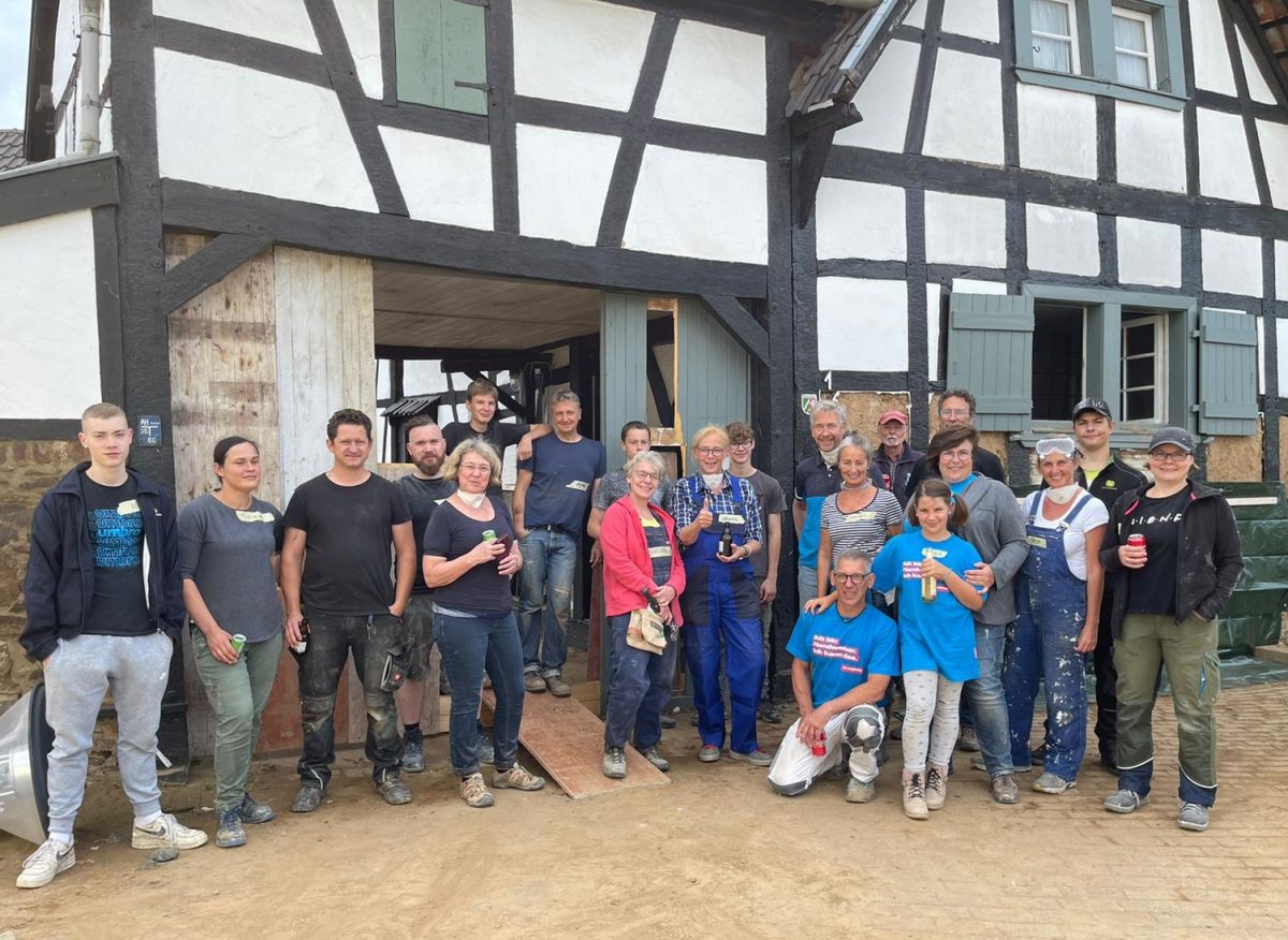 Doch das ist nicht alles. Eine Gruppe von 30 ehrenamtlichen Helfern aus ganz Deutschland hatte sich über einen privaten Hilfeaufruf zusammengefunden, um das betagte Ehepaar bei den Aufräumarbeiten und der Wiederherstellung ihres Zuhauses zu unterstützen. Über 600 freiwillige Arbeitsstunden an den Wochenenden haben diese Helferinnen und Helfer geleistet, zu denen auch eine Gruppe rühriger Jugendlicher gehört, die bei jedem Termin dabei waren und mit angepackt haben, um die Denkmäler für die Zukunft zu erhalten
