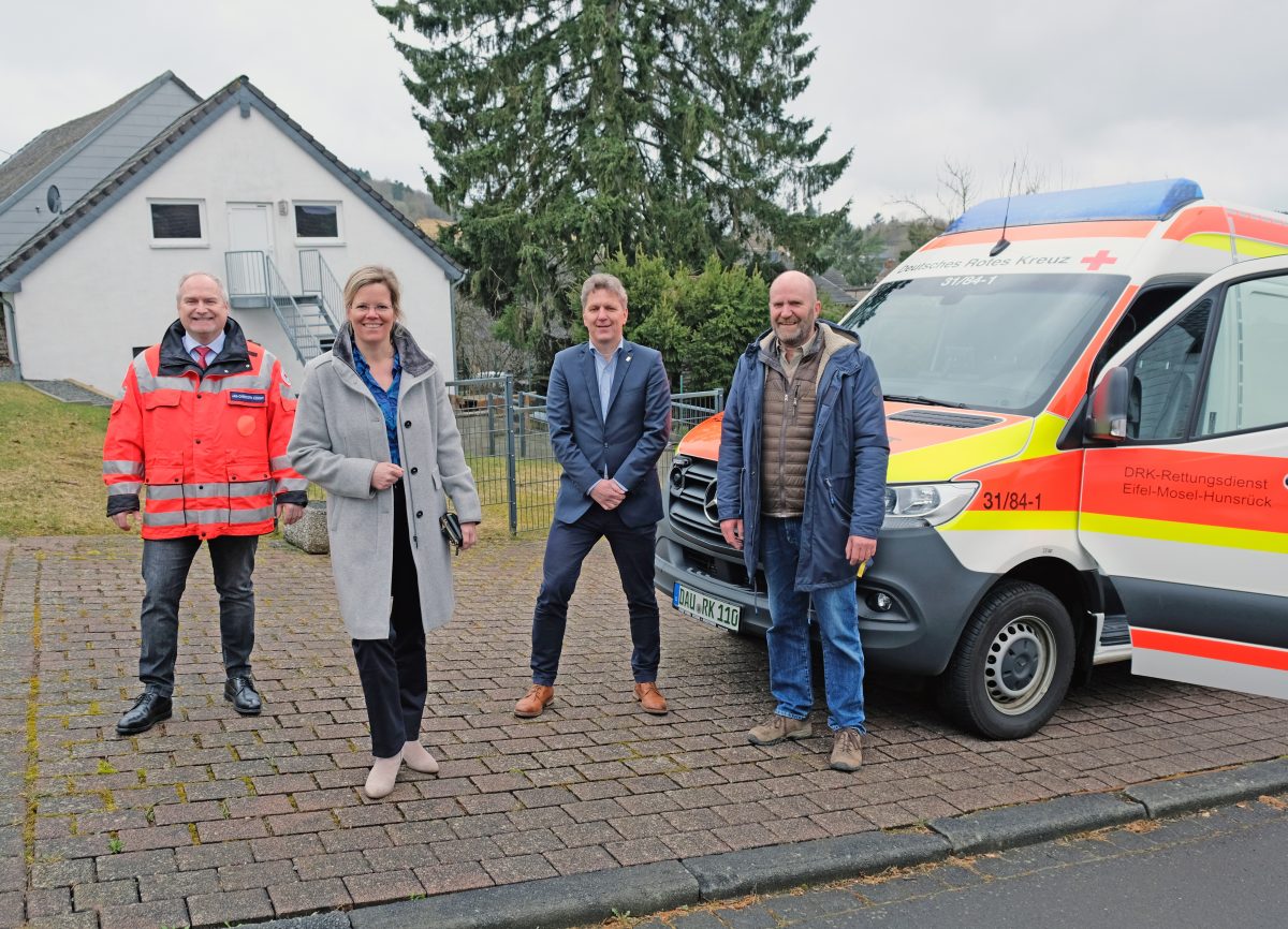 Gerolstein/Walsdorf – Das Gebäude in der Rosenstraße in der Ortsgemeinde Walsdorf wurde als optimale Außenstelle für ein zusätzliches Rettungsfahrzeug im Gebiet Jünkerath-Kelberg-Gerolstein ausgewählt. Der dort stationierte Notfall-Krankenwagen wird 24 Stunden täglich einsetzbar sein. Über seine Funktion als Krankentransporter hinaus wird das Fahrzeug personell besetzt und technisch ausgerüstet sein wie ein Rettungswagen.„Wir freuen uns sehr über die Zusage zum Rettungsstandort Walsdorf“, so Landrätin Julia Gieseking. Die neue Außenstelle verbessert nicht nur die Versorgungsqualität in der Verbandsgemeinde Gerolstein, sondern im gesamten Landkreis Vulkaneifel.“ Das Deutsche Rote Kreuz (DRK) wird im Zuge der Erweiterung den in Gerolstein vorhandenen Krankentransportwagen personell auf 24 Stunden aufstocken und von Walsdorf aus im gesamten Landkreis einsetzen. Im zweiten Schritt sollen ein höherwertiges Fahrzeug und zusätzlich weiteres hochqualifiziertes Personal eingesetzt werden.