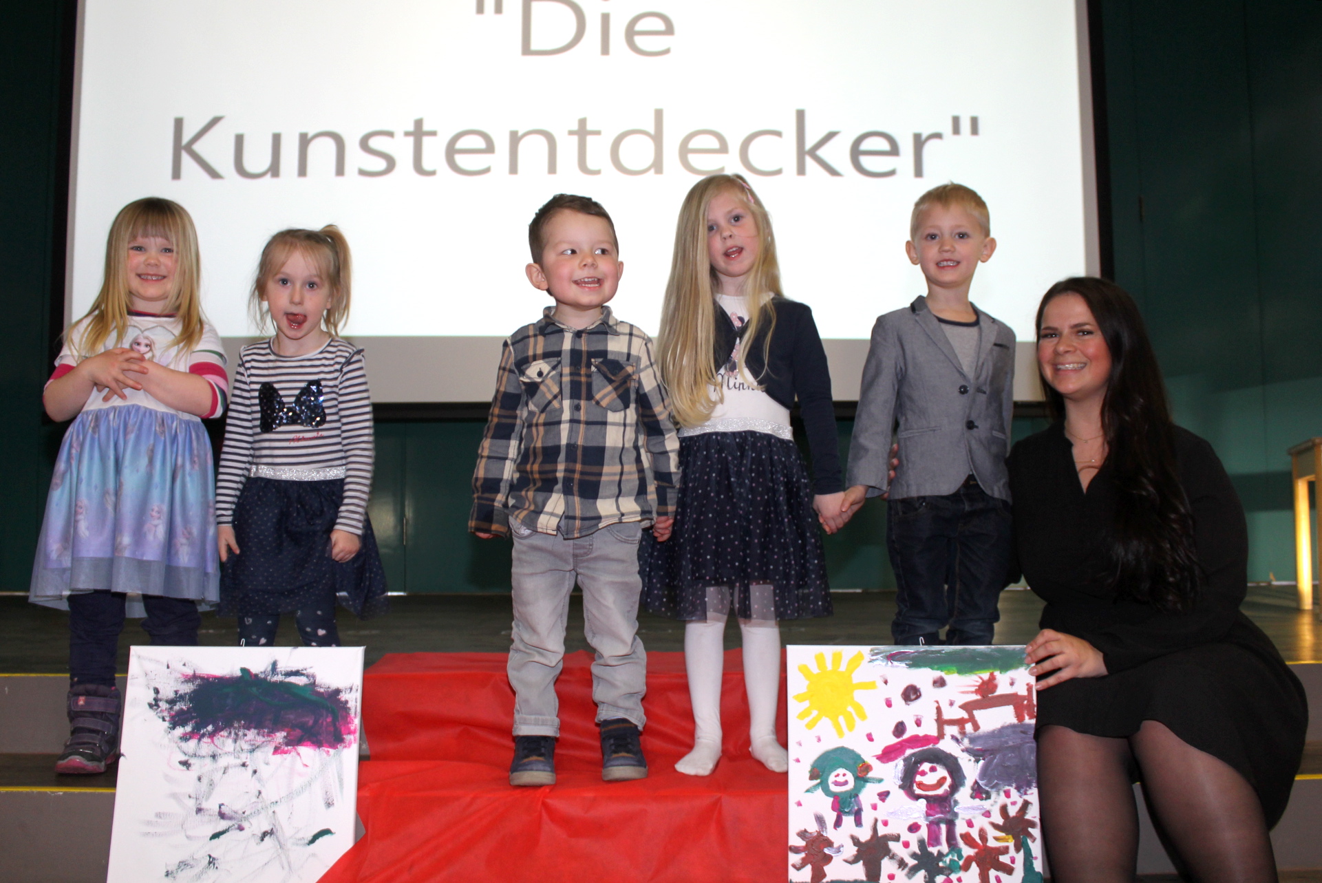 Höhepunkt der Kunstaktion war schließlich eine Vernissage in der Aula der Weilerswister Gesamtschule, in der die großartigen Bilder der Kinder ausgestellt und sogar per Auktion versteigert wurden. Eltern und Geschwister schritten mit den kleinen Künstlern über den roten Teppich und präsentierten in einer Führung ihre Werke.