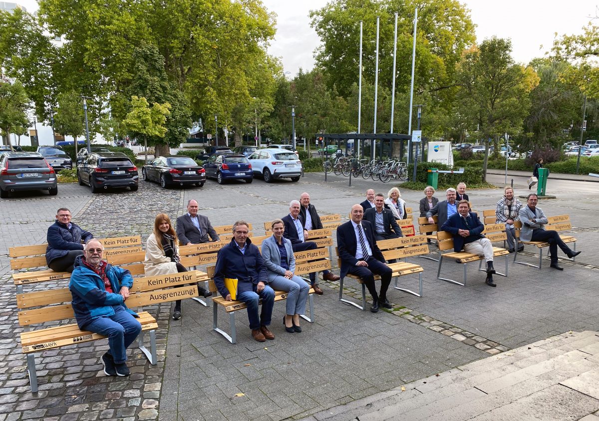 Ein Beispiel dafür: die 15 Bänke mit dem eindeutigen Statement: kein Platz für Ausgrenzung.