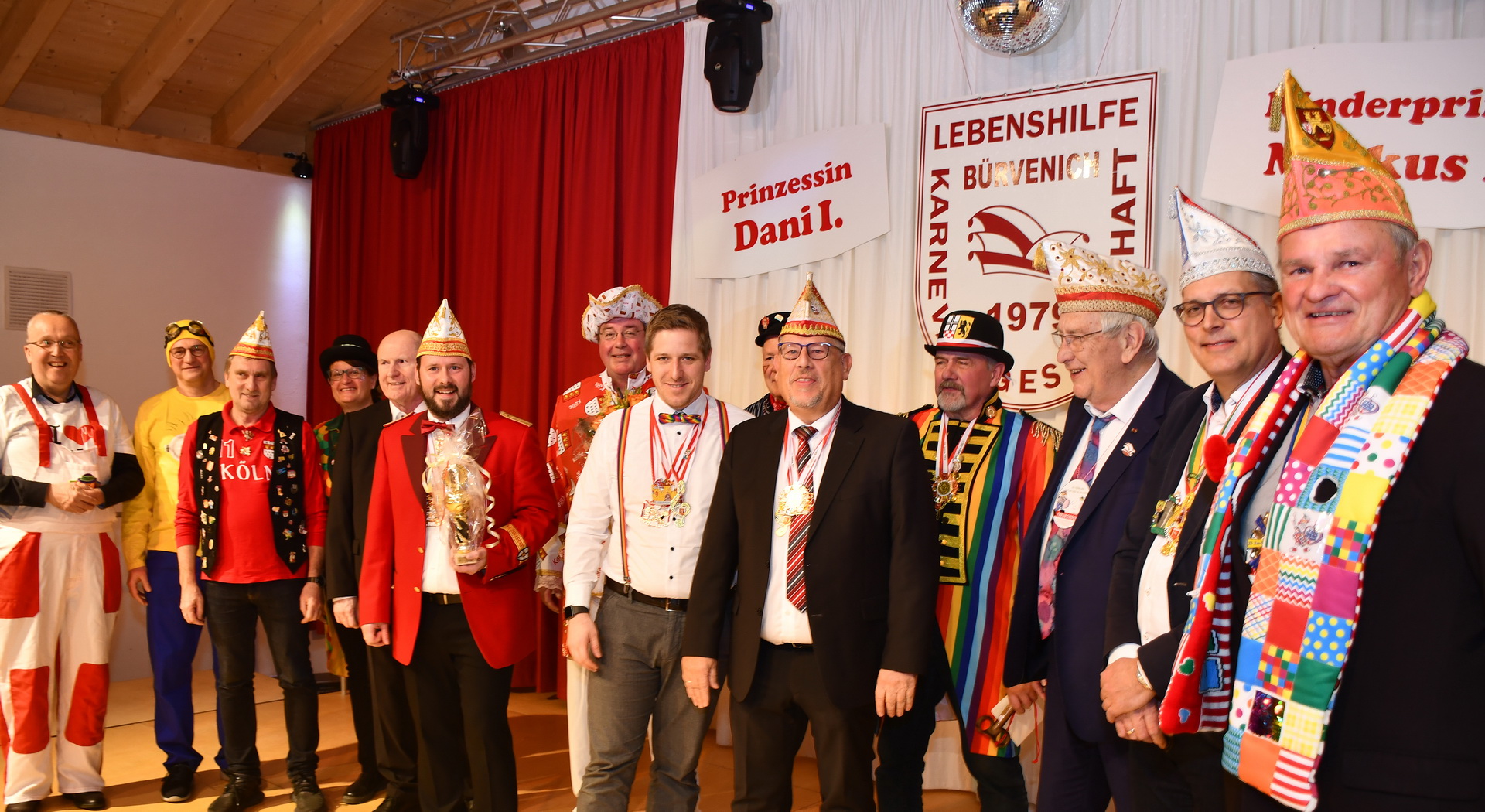 Später legte das Bürvenicher Danzspektakel noch einen spektakulären Auftritt aufs Parkett. Der Musikzug der Hovener Jungkarnevalisten spielte Prinz Rolf II. und Prinzessin Elke Kogel auf die Bretter, die die Welt bedeuten, auch Abordnungen der Zülpicher Karnevalsvereine Zölleche Öllege um Robert Frings, Prinzengarde (Horst Wachendorf), Blaue Funken (Manuel Hagedorn) und Hovener Jungkarnevalisten (Gerd Wallraff) machten ihre Aufwartung.