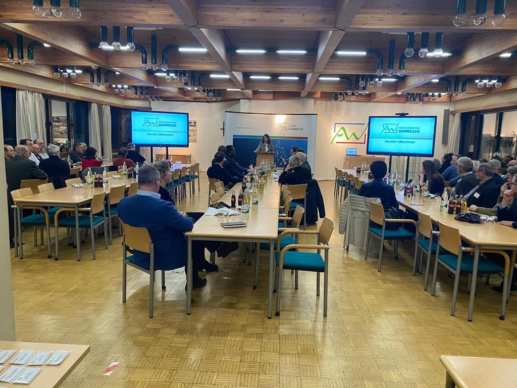 Ahrweiler – Dienstbesprechung der Ortsbürgermeister, Ortsvorsteher und kommunaler Funktionsträger im Kreis Ahrweiler. Kommunale Wärmenetze stehen im Fokus der Dienstbesprechung. Nach coronabedingter Pause hat auf Einladung von Landrätin Cornelia Weigand am vergangenen Dienstag erstmals wieder eine Dienstbesprechung der haupt- und ehrenamtlichen Ortsbürgermeisterinnen und -bürgermeister, Ortsvorsteherinnen und -vorsteher sowie kommunalen Funktionsträgerinnen und -träger im Kreishaus stattgefunden. Im Fokus standen diesmal Fragen zur zukünftigen Energieversorgung in den Kommunen, speziell das Thema „Kommunale Wärmenetze“ beschäftigte die anwesenden Teilnehmenden und Experten.