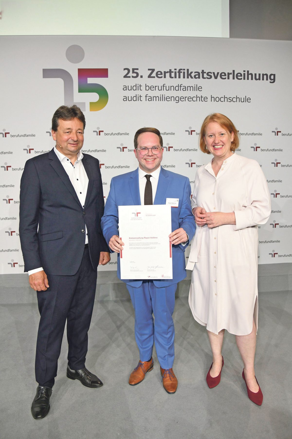 Region/Mayen-Koblenz – Die Vereinbarkeit von Beruf und Familie ist seit jeher fest in der Kreisverwaltung Mayen-Koblenz verankert. Daher ist man im Kreishaus froh und stolz zugleich, dass die Kreisverwaltung als moderner Arbeitgeber bereits zum sechsten Mal infolge die Bestätigung dafür erhalten und von der Beruf und Familie-GmbH für ihre langjährige, nachhaltige familien- und lebensphasenbewusste Personalpolitik ausgezeichnet wurde. Die Zertifikatsverleihung fand jüngst in Berlin statt, wo der Erste Kreisbeigeordnete Pascal Badziong stellvertretend für den Landrat die zugehörige Urkunde aus den Händen der Bundesministerin für Familie, Senioren, Frauen und Jugend Lisa Paus entgegennahm.