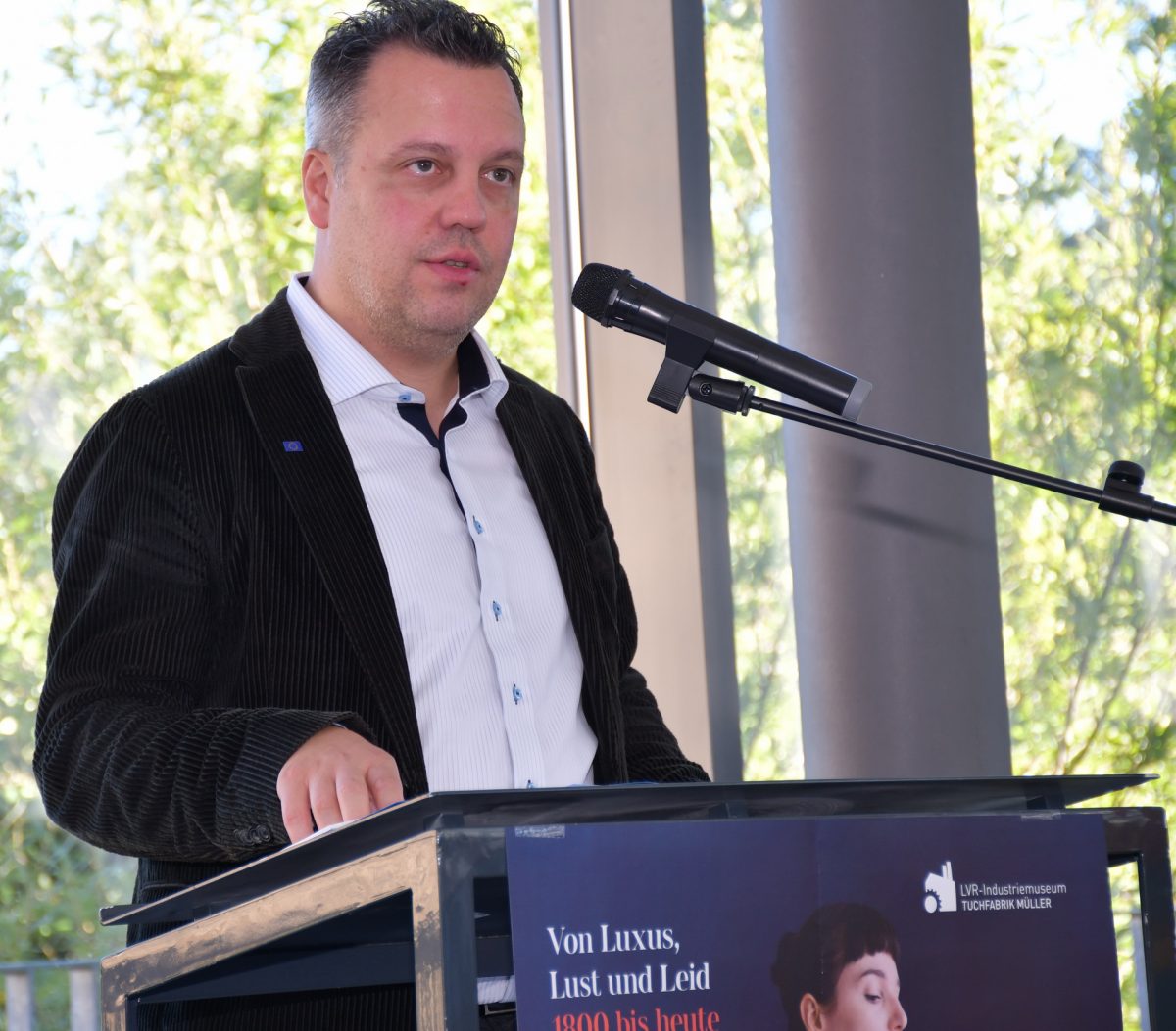 Er erinnerte in einem Grußwort an Euskirchens große Vergangenheit als Weberstadt, vor allem Uniformstoffe wurden dort vor 1914 in 21 Tuchfabriken hergestellt. Im Königreich Preußen und deutschen Kaiserreich trug „man“ in den unterschiedlichsten Rollen Uniform, Briefträger, Lokomotivführer und Straßenbahnschaffnerinnen eingeschlossen.