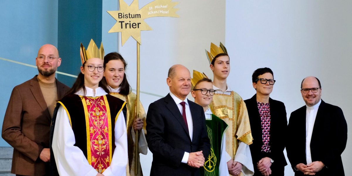 Region/Trier/Berlin/Alken – Seit 1984 bringen die Sternsinger jedes Jahr ihren Segen ins Bundeskanzleramt. Mit von der Partie sind auch immer Kinder und Jugendliche aus dem Bistum Trier. „Gemeinsam für unsere Erde – in Amazonien und weltweit“ lautet das Motto der laufenden, 66. Aktion Dreikönigssingen, mit dem 108 Sternsingerinnen und Sternsinger – darunter auch Johanna (17), Emma (16), Jakob (15) und Nils (14) sowie Begleiterin Anja Isaak aus der Gemeinde St. Michael in Alken – am 8. Januar bei Bundeskanzler Olaf Scholz offene Türen einrannten. „Schönen Dank für all das, was ihr unternehmt, schönen Dank für die Bereitschaft, füreinander einzustehen, für die Nächstenliebe und für Euer Verständnis, dass wir auf dieser Welt alle füreinander verantwortlich sind“, dankte der Bundeskanzler dem königlichen Besuch beim dritten Sternsingerempfang in seiner Amtszeit. „Der Amazonas ist bedeutsam für die Qualität des Lebens auf der ganzen Erde“, lobte Scholz den Einsatz der Sternsinger für die Bewahrung der Schöpfung und das Recht aller Kinder weltweit auf eine gesunde Umwelt. Es sei wichtig, Klimawandel und Entwaldung zu stoppen, machte der Bundeskanzler unmissverständlich deutlich.