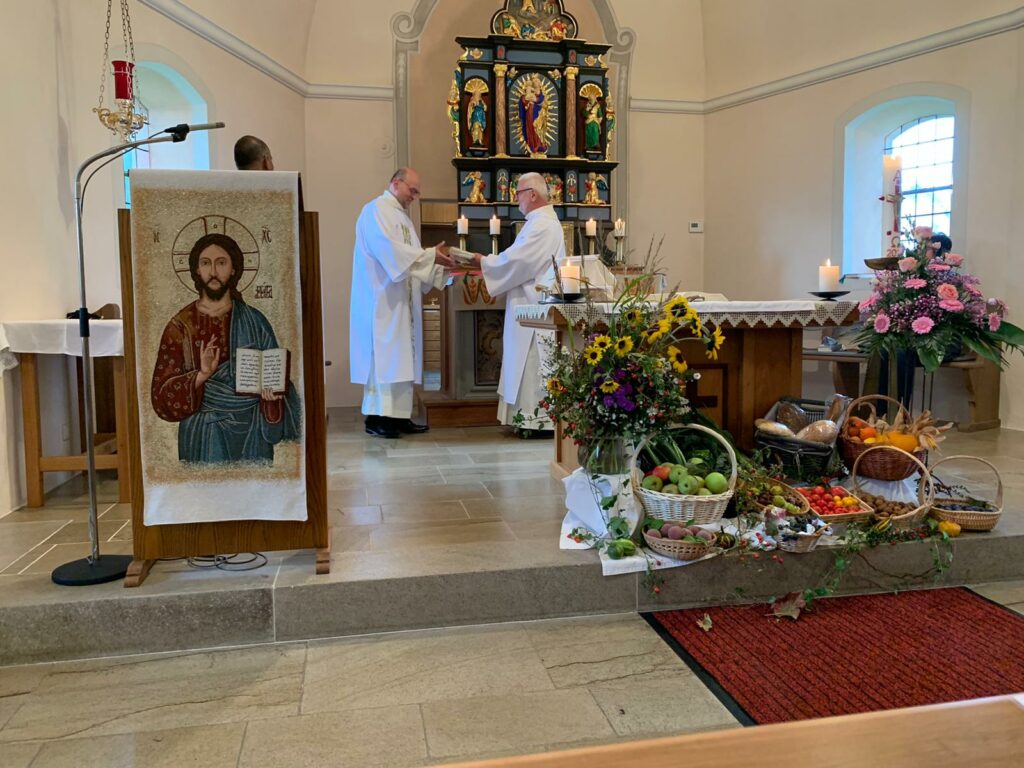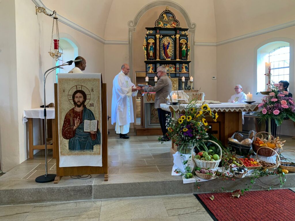 In einem Dankgottesdienst bei der Auderather Kirmes leistete Norbert Schmitz (54) dann an der Seite von Pater Lenin James, SCJ, und Diakon Wilfried Puth seinen ersten Dienst als Diakon in einer Heiligen Messe und hielt eine eindrucksvolle Predigt, in der er auch seinen Dank an all die aussprach, die ihn auf seinem Weg zum Diakon begleitet haben. „Ich habe alles andere als Ablehnung gespürt, als bekannt wurde, dass ich zum Diakon geweiht werden wollte. Viele sind auf mich zu gekommen, haben mich für diesen Weg gestärkt. Manche haben für mich gebetet und Gott um eine gute Berufung gebeten: so fühlte ich mich in dieser Zeit im Gebet getragen. Dafür danke ich Gott – dafür danke ich euch allen“, so der neu geweihte Diakon.