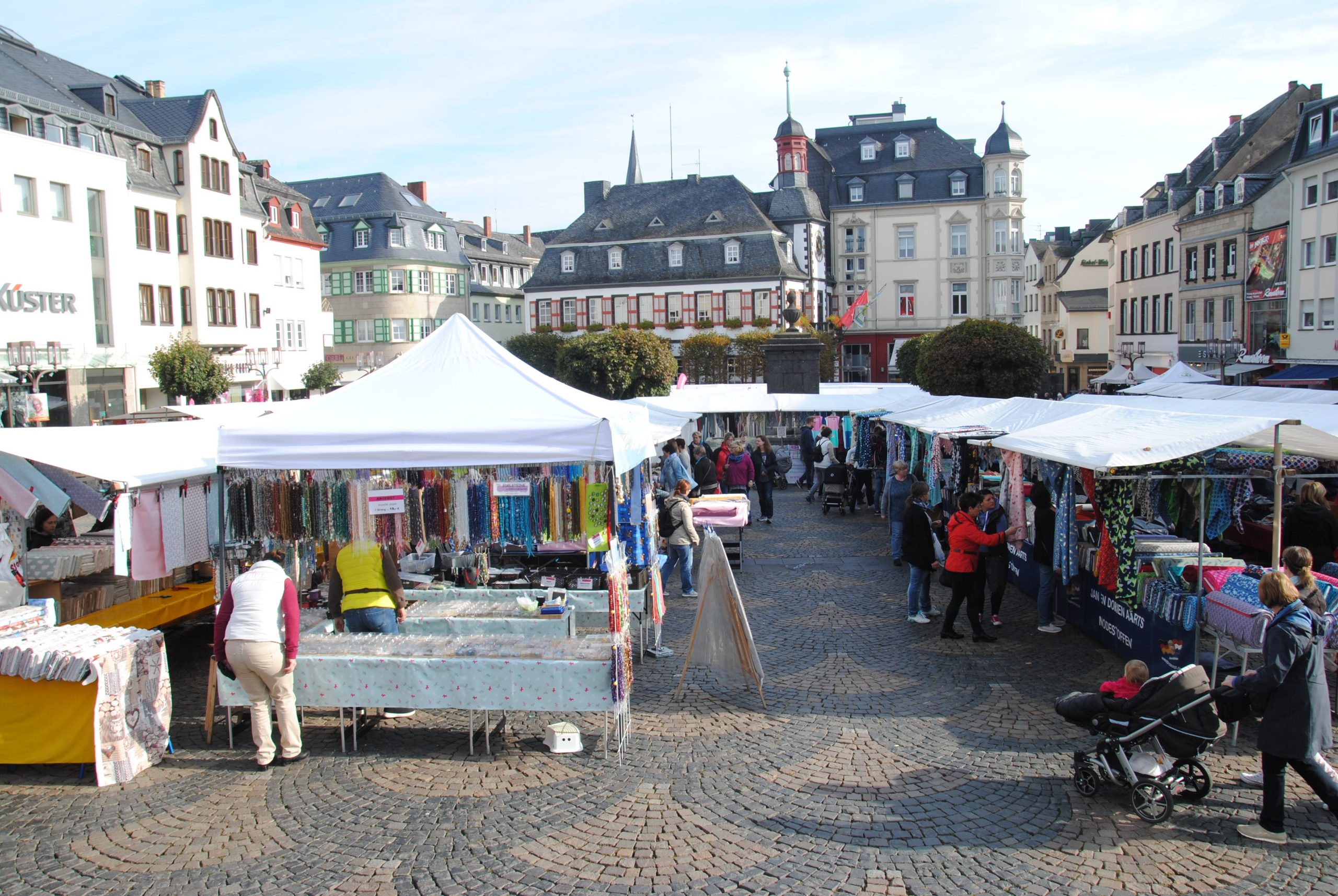 Deutsch-Holländischer Stoffmarkt auf dem Marktplatz in Mayen