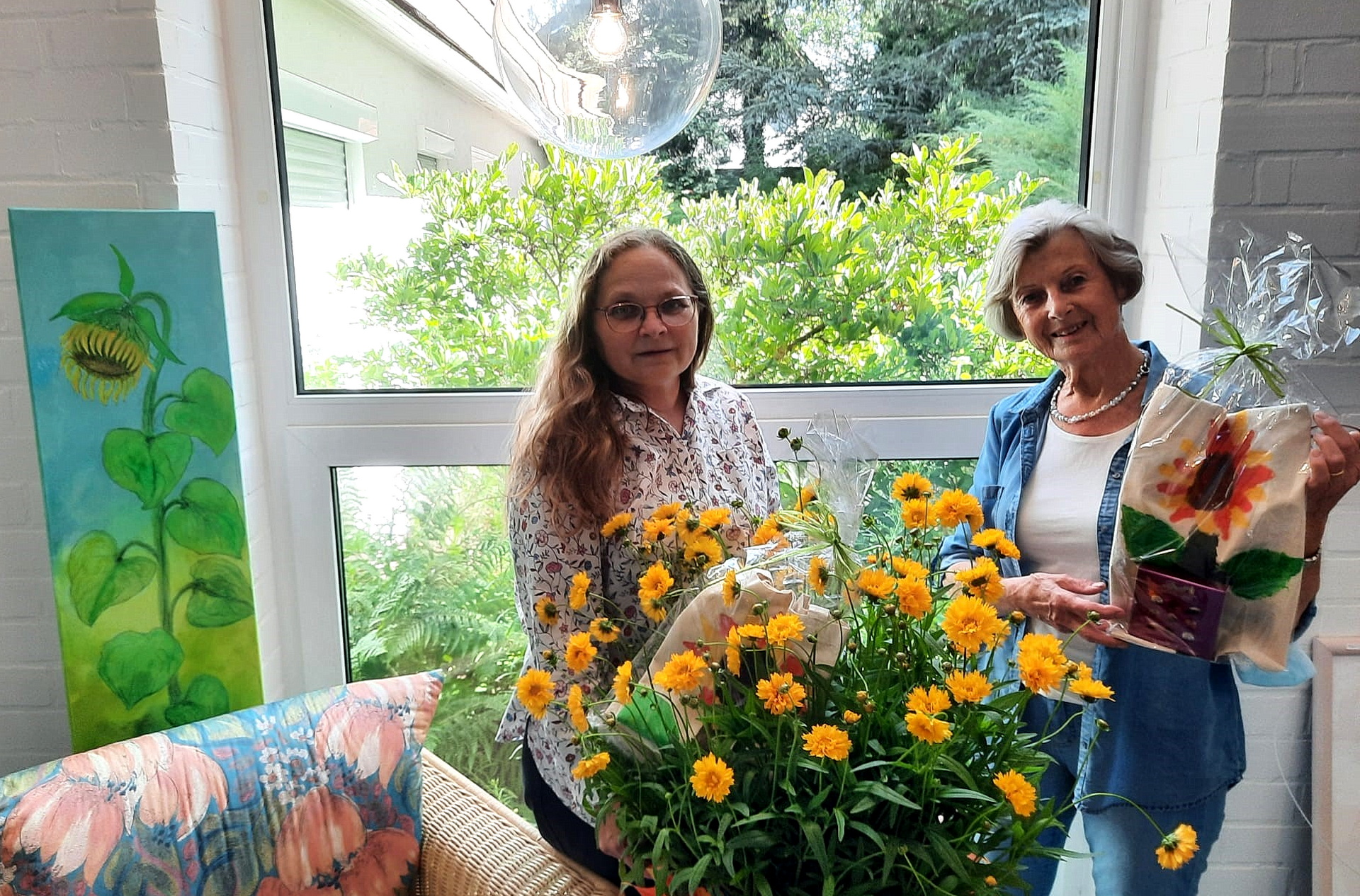 Aktion „Flut-Sonnenblumen“ der Künstlerinnen Sigrid Kroczek und Isabelle Bauer