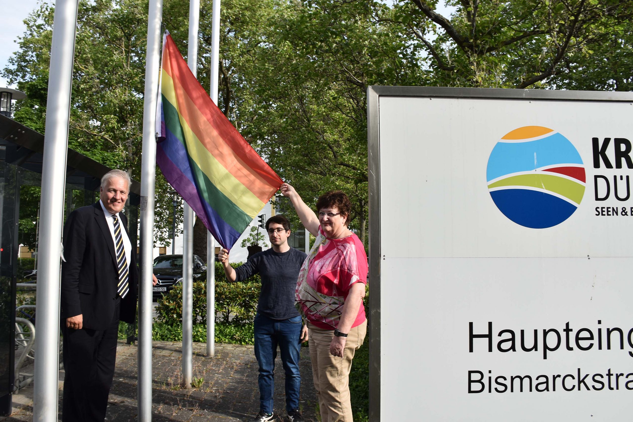 Düren – Am internationalen Tag gegen Homo-, Bi-, Inter- und Transphobie (IDAHOBIT) am heutigen Dienstag, 17. Mai, hat Landrat Wolfgang Spelthahn die Regenbogenflagge vor dem Kreishaus gehisst – gemeinsam mit…