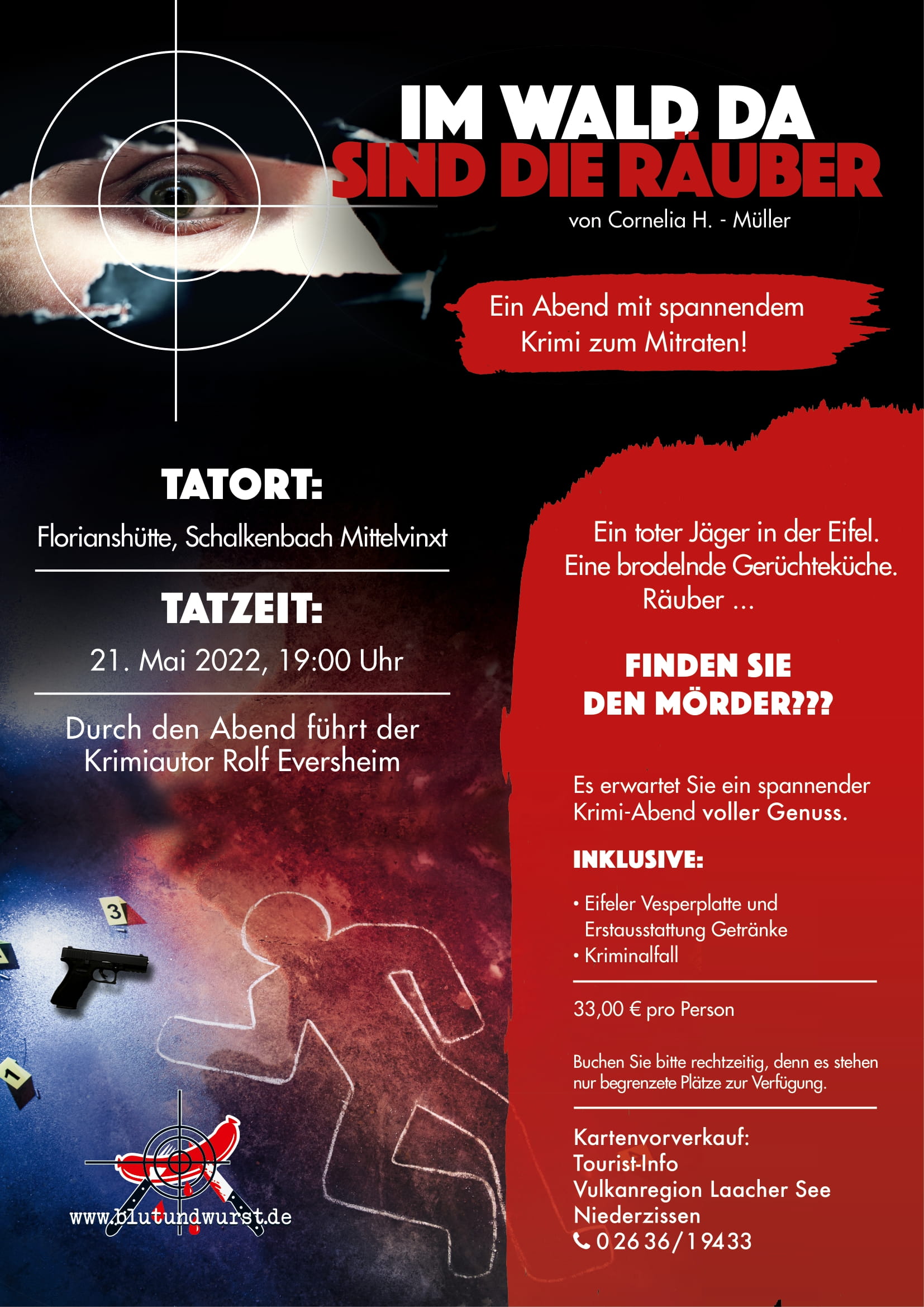 Schalkenbach/Brohltal – Mörderisch viel Spaß gibt es bei Kriminalfällen zum Mitspielen. Am Samstag, 21. Mai 2022 heißt es um 19.00 Uhr in der Florianshütte Schalkenbach „Wer ist der Mörder?“. Der…