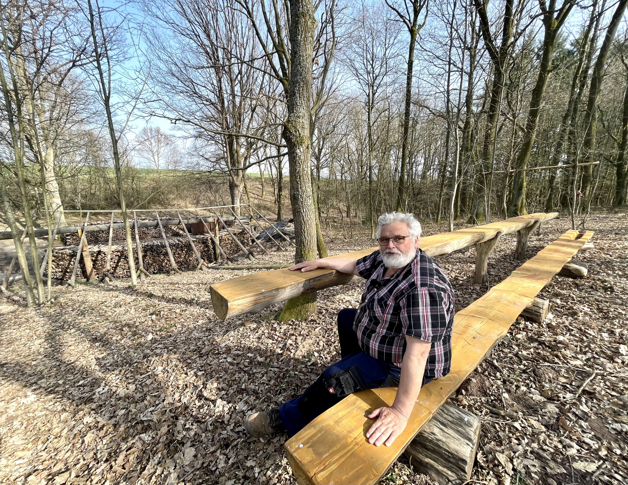 Düttlinger Meiler 2022 und Köhlermeister Gerd Linden
