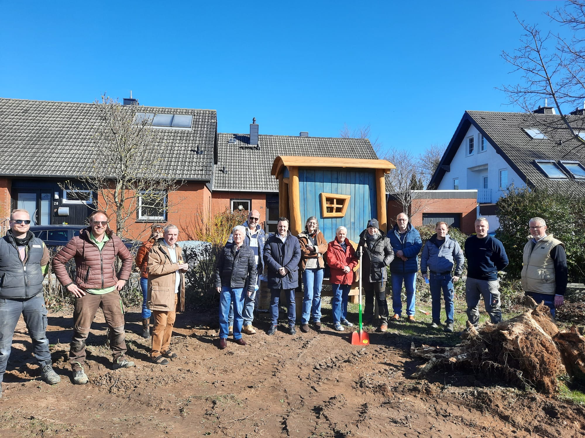 Helfergruppe baut Spielpunkt in Schweinheim