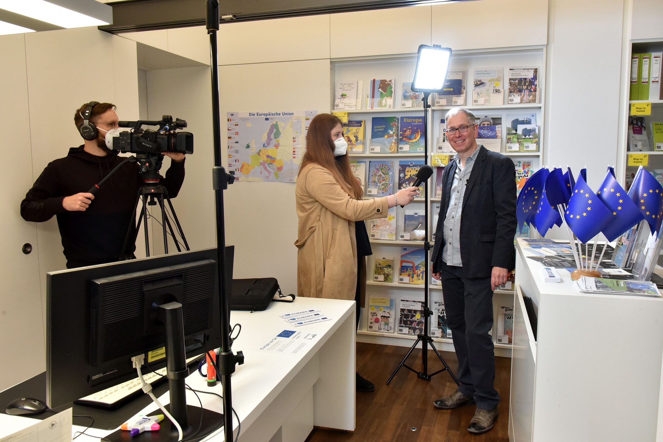 Dreharbeiten beim Aachener Europe Direct Büro