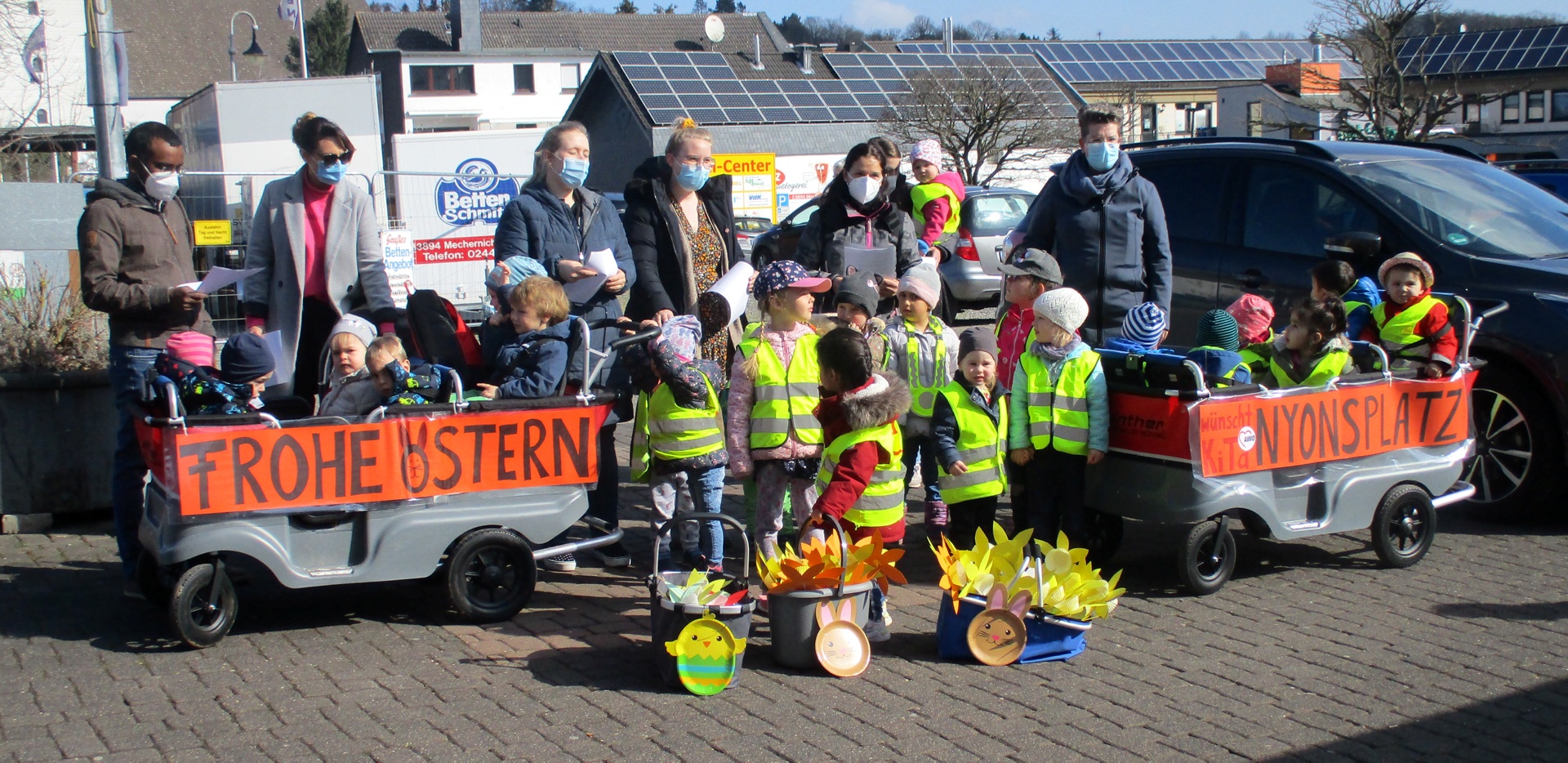 Mechernich, 30.03.2021 – Kinder der Awo-Kindertagesstätte Nyonsplatz haben am Freitag, 26. März, selbst gebastelte Narzissen auf dem Mechernicher Wochenmarkt an die Besucher verschenkt. „Damit haben die Kleinen in der aktuell…