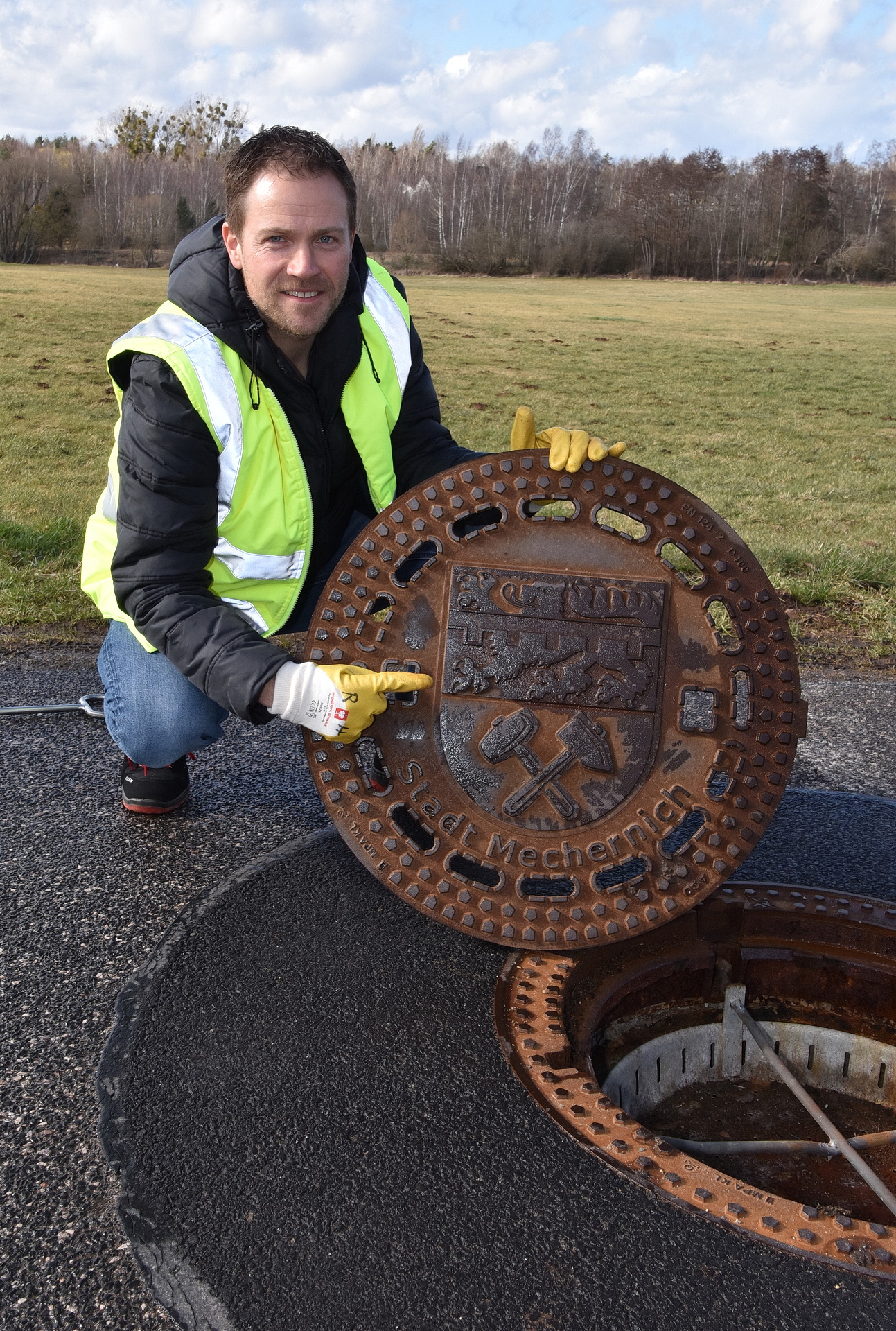 Kanaldeckel mit Wappen: Stadtwerke bauen kostenneutral individuell Mechernicher Accessoires ein