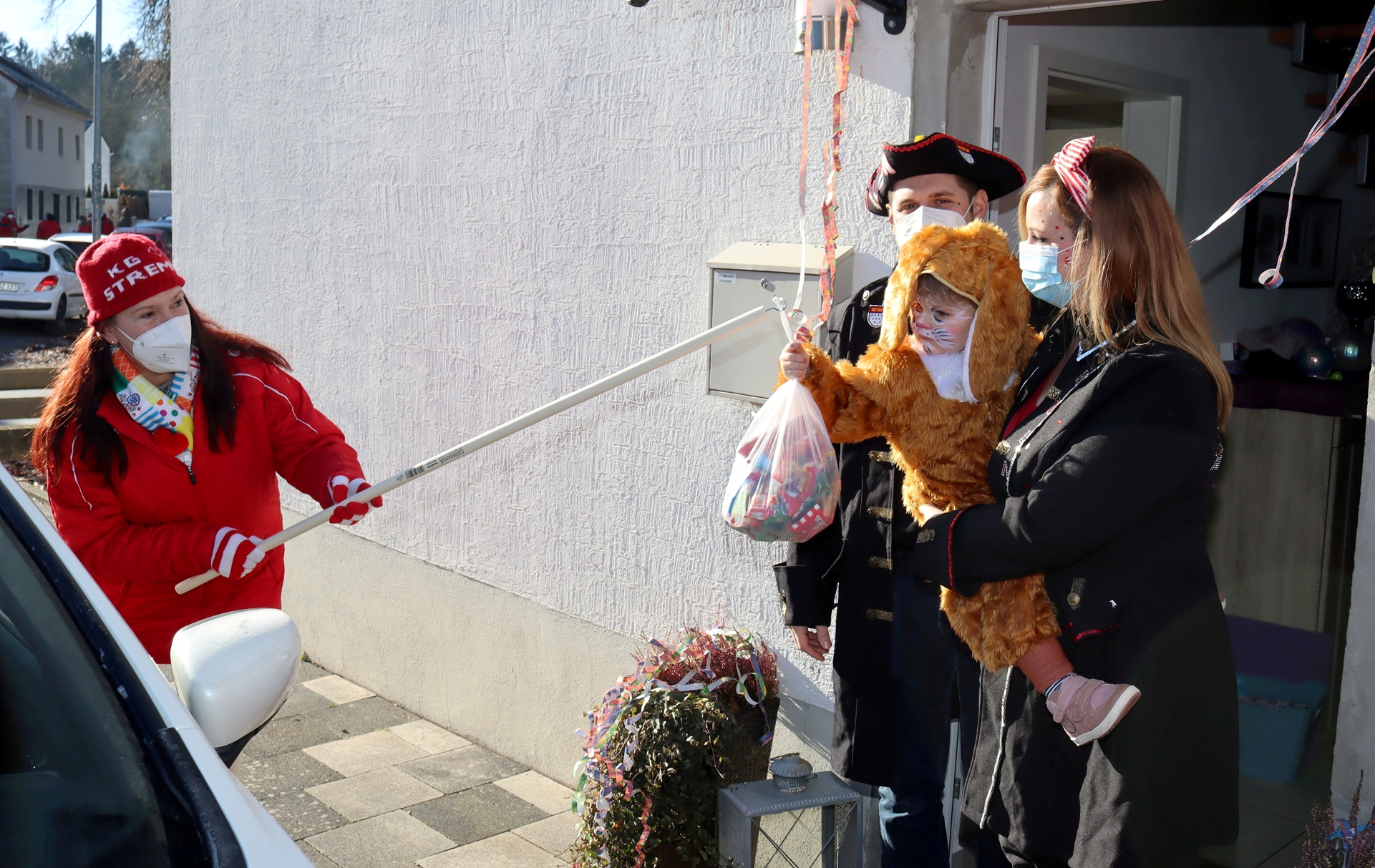 Ein jeckiges Dutzend der KG Strempt ging am Karnevalssamstag von Haus zu Haus