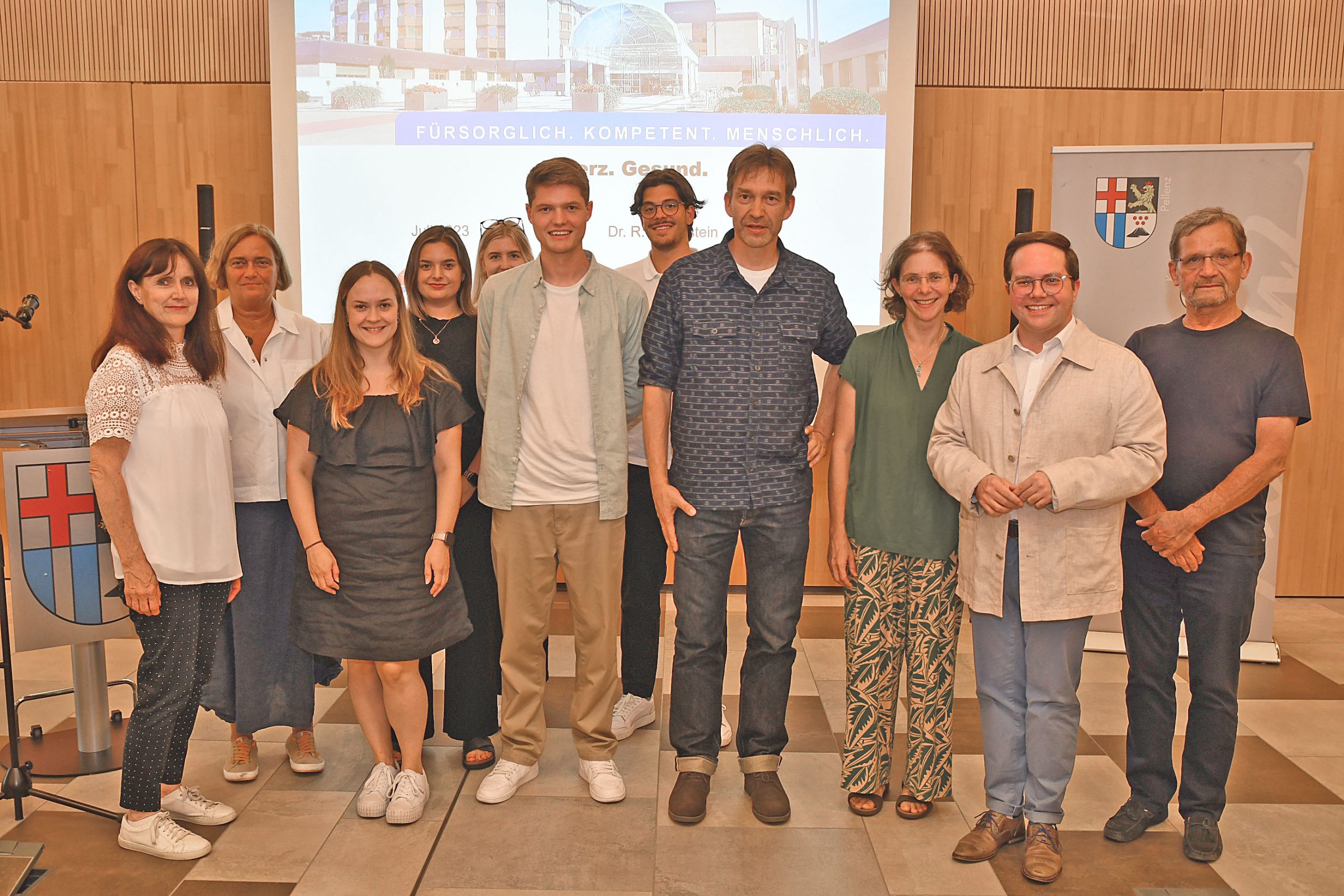 Mayener Stadtrats-Mitglieder erhalten Pins zum Bundesfest