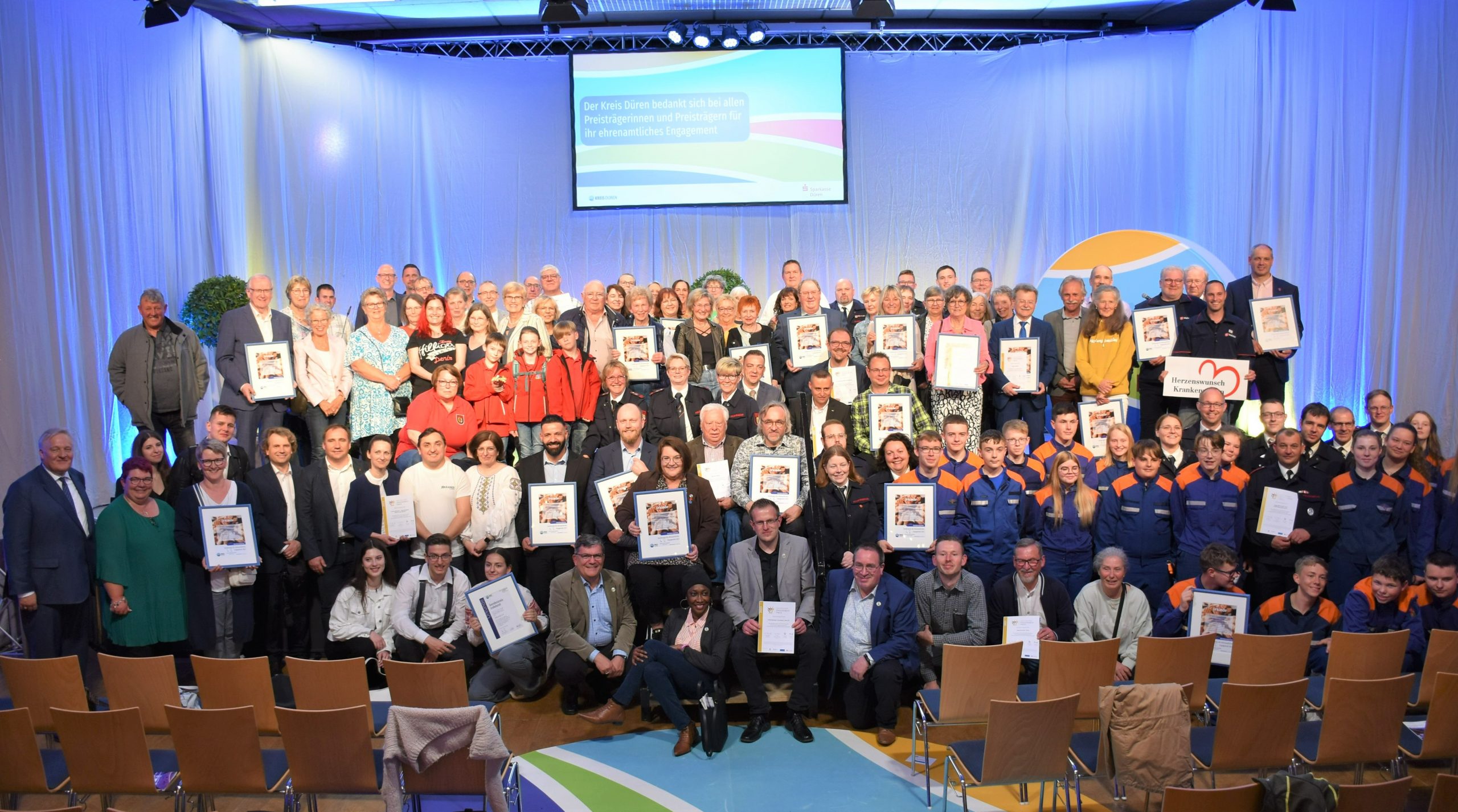 Kreuzau/Düren – Bei der 23. Ehrenpreisverleihung des Kreises Düren wurden am Mittwoch, 10. Mai, in der Festhalle Kreuzau wieder 25 Einzelpersonen, Gruppen oder Vereine für ihr ehrenamtliches Engagement ausgezeichnet –…