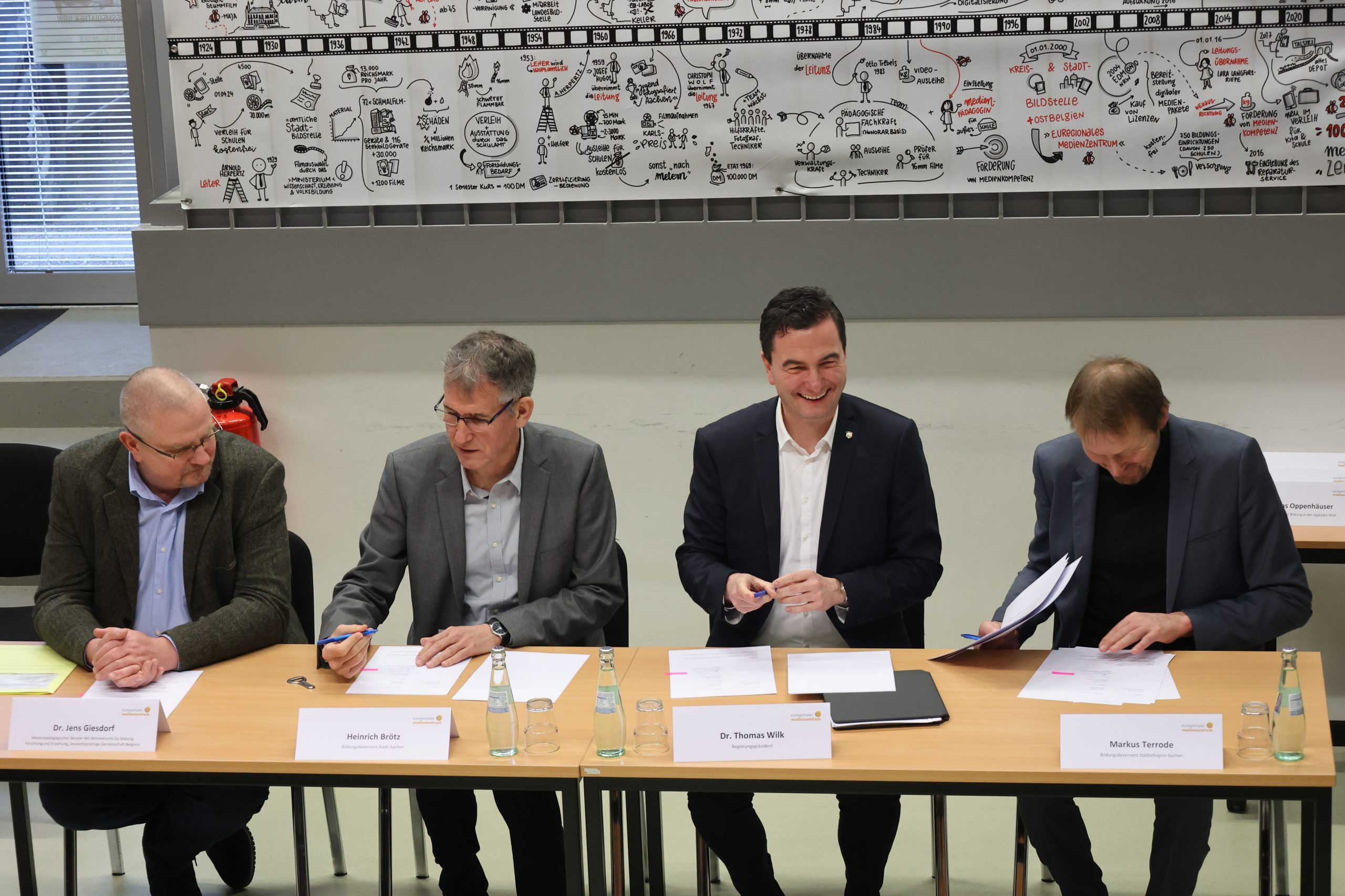 Aachen – Gemeinsam ans Ziel: Regierungspräsident Dr. Thomas Wilk unterzeichnet Kooperationsvereinbarungen mit dem Euregionalen Medienzentrum. „Wenn es das Euregionale Medienzentrum nicht gäbe, müsste man es genauso erfinden“, ist Heinrich Brötz,…